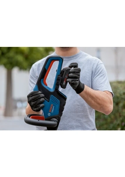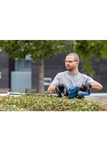 GHE 18V-50 Professional akülü çit kesme makinesi, ergonomik tasarımı sayesinde kullanımı kolaydır. Güçlü fırçasız motoru, orta yoğunluktaki çitler için sürekli kesme sağlar. 20 mm'lik kesme kapasitesiyle daha kalın dalları da kolayca ve rahatça kesebilirsiniz. İnatçı dalları keserken, patentli Bosch Anti-Blokaj Sistemi, elektronik algılama ve kesme işleminin otomatik tekrarı yoluyla kesme bıçaklarının sıkışmasını önler. Hafifliği, optimum dengesi ve ergonomik tasarımı sayesinde akülü çit kesme makinesi uzun süreli çalışmalar için uygundur. Akülü çit kesme makinesinin düşük gürültü seviyesi ve emisyonsuz çalışması, onu konutlarda veya diğer gürültüye duyarlı alanlarda çalışmak için ideal bir araç haline getirir.