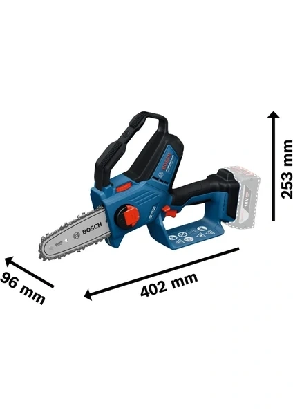 Şarj başına 350 adede kadar kesim yapabilen GKE 18V-15 Professional ağaç budama makinesi, Oregon zincirinin hızlı bir şekilde değiştirilmesi için aletsiz gerdirme özelliği sunar. Kesme kontrolü için değişken hız tetiğine sahiptir.